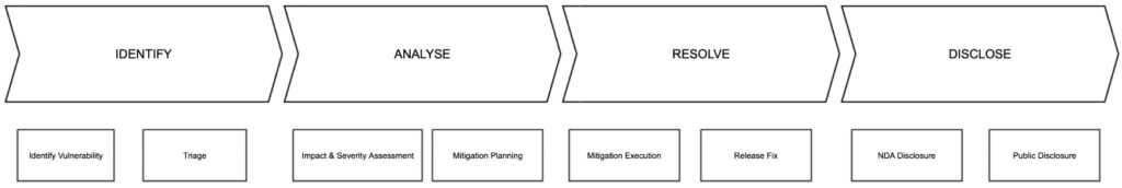 - Triage: Our initial steps involve conducting comprehensive investigations to validate its authenticity, identifying potential duplicates etc. If the reported issue is found to be not genuine, vexatious, or a duplicate, it will be rejected or marked accordingly.